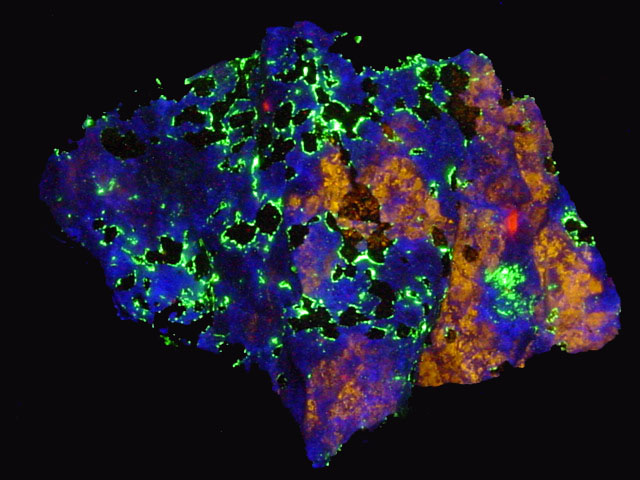 Name & Location: Esperite, Hardystonite, Willemite, Franklin Mine, Franklin, New Jersey.