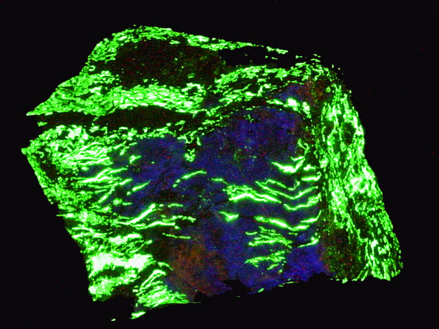 Notes: "Lighting Strike" veinlets of willemite in ore specimen. Not very common. Exhibits sustained luminescence.