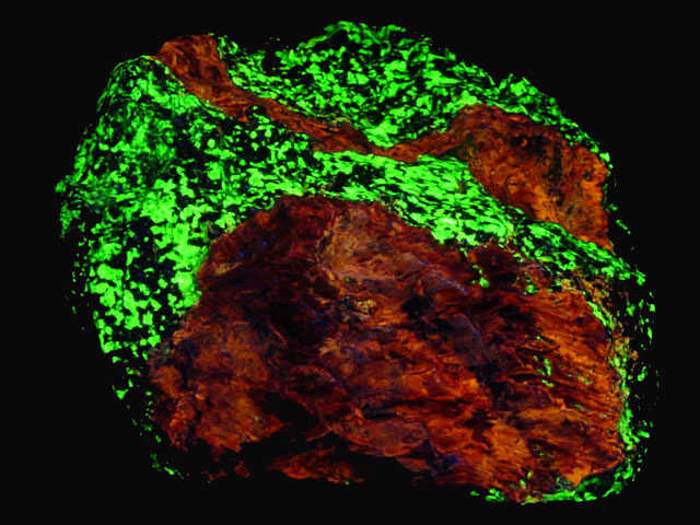 Name & Location: Sphalerite, Willemite, Sterling Hill Mine, Ogdensburg, New Jersey.