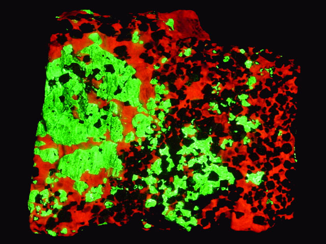 Name & Location: Willemite, Calcite, Sterling Hill Mine, Ogdensburg, New Jersey.