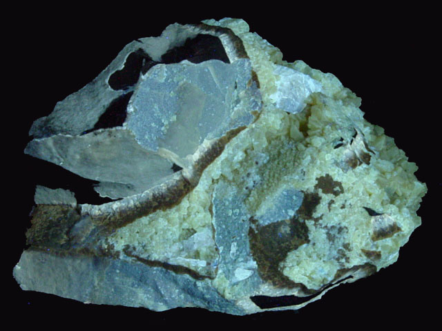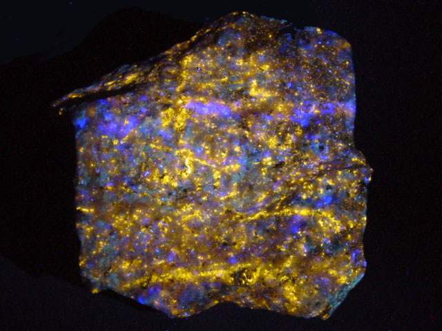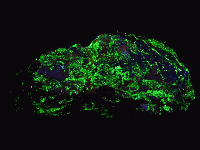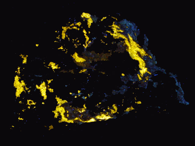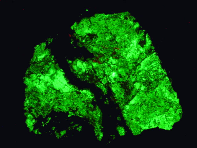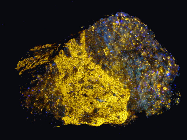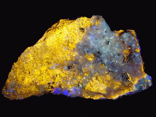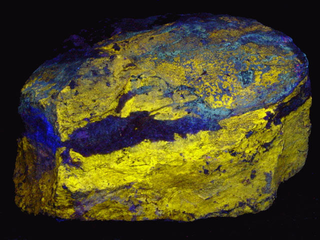 Notes: Almost solid medium yellow fluorescing wollastonite.
