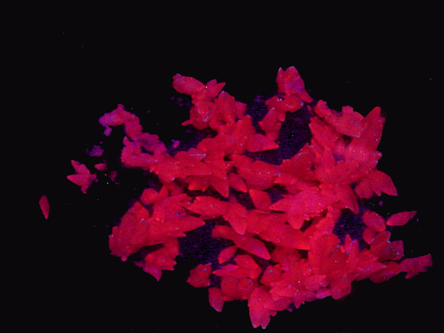 Notes: Very rare eucryptite crystals (1mm-3mm), collected in the 1960s! Typical crimson red fluorescent response. Specimens did NOT photograph well.