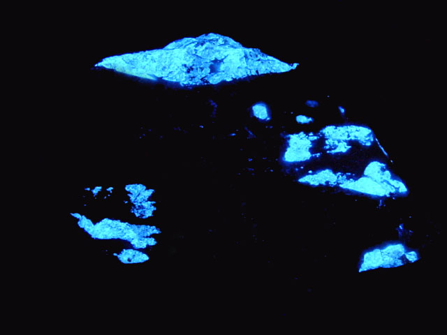 Notes: Rich specimen of scheelite with a medium bright fluorescing wollastonite.