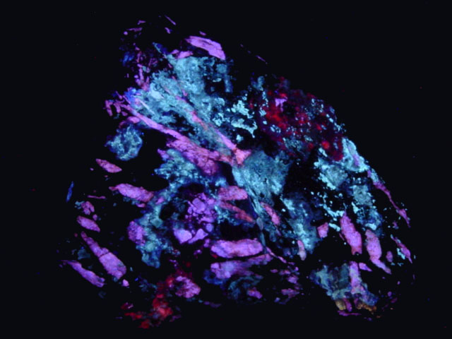 Name & Location: Tremolite, Red/Pink Fluorescing Amphibole, Talc, U.S. Talc Company, Talcville, New York